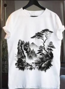 Model's Outfit: The person wearing the tee has their hands in the pockets of black pants. A gray watch is visible on the left wrist.