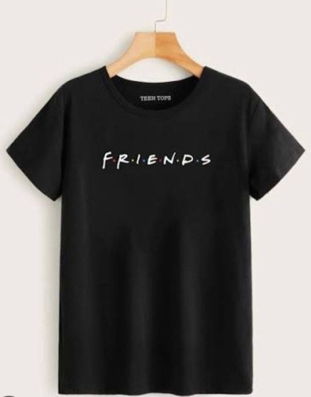 – *Color Scheme:* The tee is a sleek black, making it a versatile piece for any wardrobe. The white lettering of “FRIENDS” pops against the dark background, catching the eye without being too loud.
