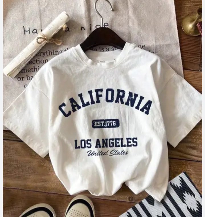 The combination of the California-themed graphics, the choice of fonts, and the styling with natural textures like wood and linen evoke a sense of effortless West Coast cool. The “EST. 1776” detail adds a touch of history and authenticity to the design, while the overall look feels fresh and contemporary. This shirt would be perfect for a casual day out, a music festival, or just lounging around with friends. The aesthetic is all about blending comfort with a stylish nod to California’s iconic vibe – think sun-kissed days, laid-back attitudes, and a hint of bohemian chic.