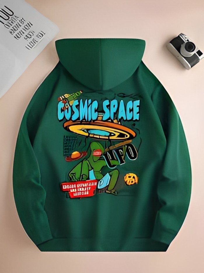 – Above the frog, “COSMIC SPACE” is written in blue letters.