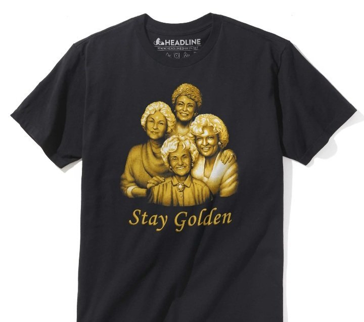 Below the illustration of the Golden Girls, the phrase “Stay Golden” is emblazoned in a stylish, cursive golden font. This catchphrase is a nod to the show’s theme of friendship, laughter, and living life to the fullest in the sunny city of Miami. The text complements the illustration perfectly, tying the whole design together with a message that’s both nostalgic and aspirational.