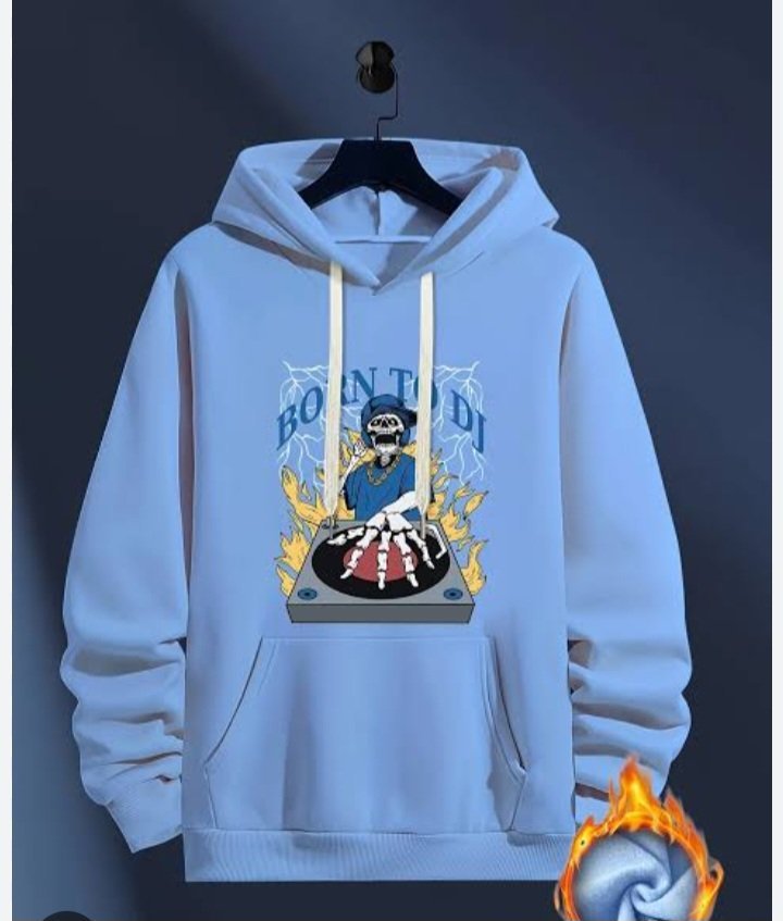 “Bounty DJ hoodie featuring a skeleton DJ spinning tunes on a turntable amidst flames 🔥💿. Stylish light blue hoodie with a bold graphic print. Perfect for music lovers and streetwear enthusiasts 👕🎧.”