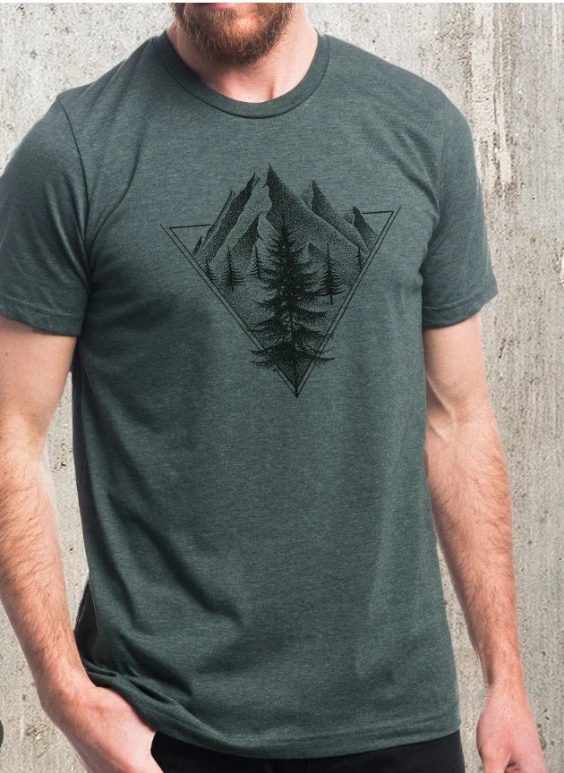 – Elements inside triangle: Mountains (background), trees (foreground).