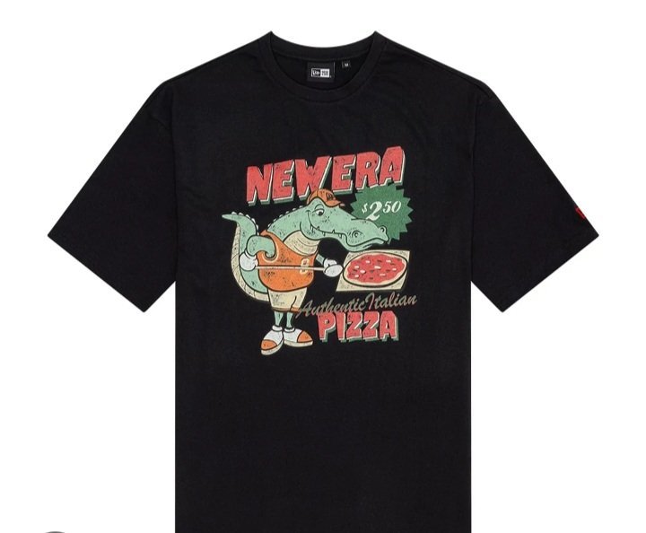 The aesthetic of the “Pizza Dino Vibes” tee leans heavily into a fun, casual vibe that’s perfect for fans of quirky graphics, food motifs, or dinosaurs. The contrast of the bold red and green graphics against the black shirt makes the design stand out sharply, giving it a youthful and energetic feel. The mix of retro-style illustration with modern graphic tee aesthetics makes this shirt appealing to those who like offbeat fashion statements.